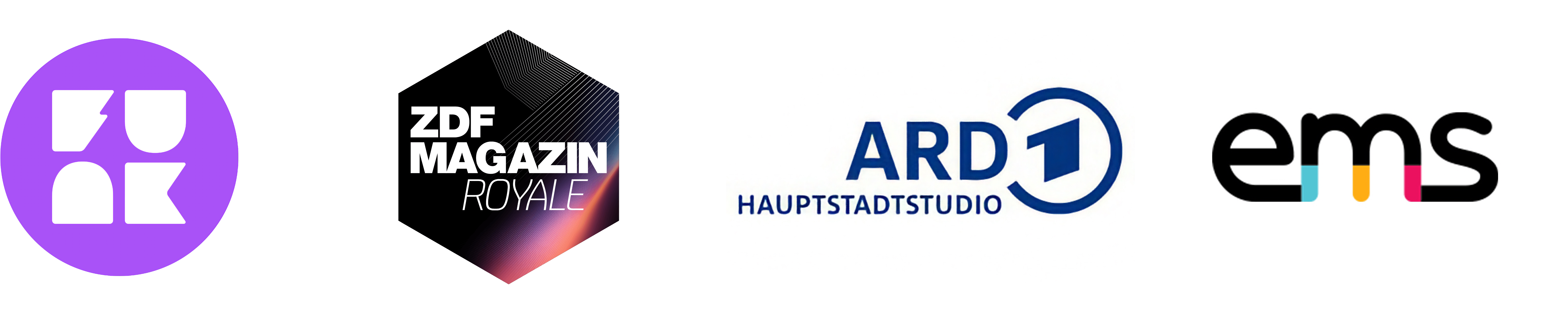 Meine externen Stationen waren u.a. das ARD-Hauptstadtstudio in Berlin, das ZDF Magazin Royale (Unterhaltungsfernsehen Ehrenfeld GmbH) in Köln, funk in Mainz und Fernseh- und Radioseminare an der ems electronic media school in Potsdam.